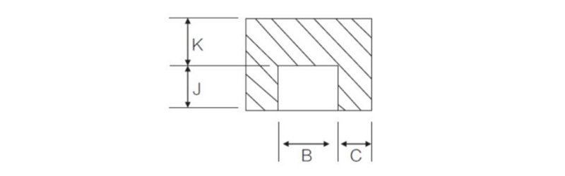 | Especificación | Especificación | Longitud total | Diámetro exterior | Diámetro interior del zócalo B | Profundidad Jack J | Espesor inferior K | Espesor de pared C | Peso KG |
