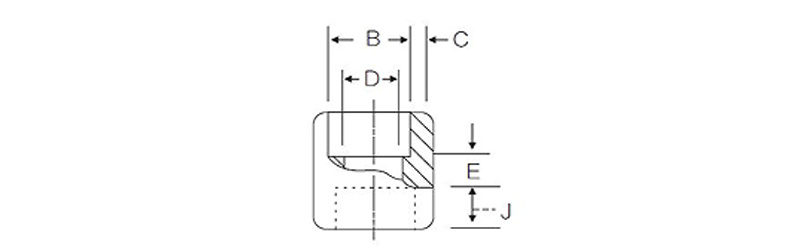 | Спецификация | Спецификация | Общая длина | Внешний диаметр | Внутренний диаметр гнезда B | Глубина домкрата J | Длина средней части E | Сквозное отверстие D | Толщина стенки C | Вес КГ |